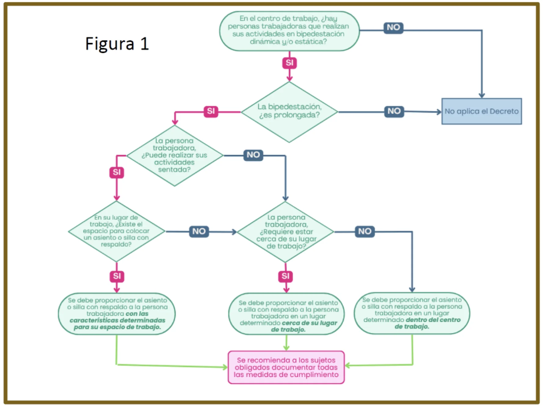 Es importante conocer estos conceptos y cumplir con las disposiciones ya que son obligatorias para todos los centros de trabajo en territorio nacional, que cuenten con personas trabajadores que realicen tareas en bipedestación durante la jornada laboral en sectores servicios, comercio y análogos y cuando lo permita la naturaleza del trabajo, en establecimientos industriales.